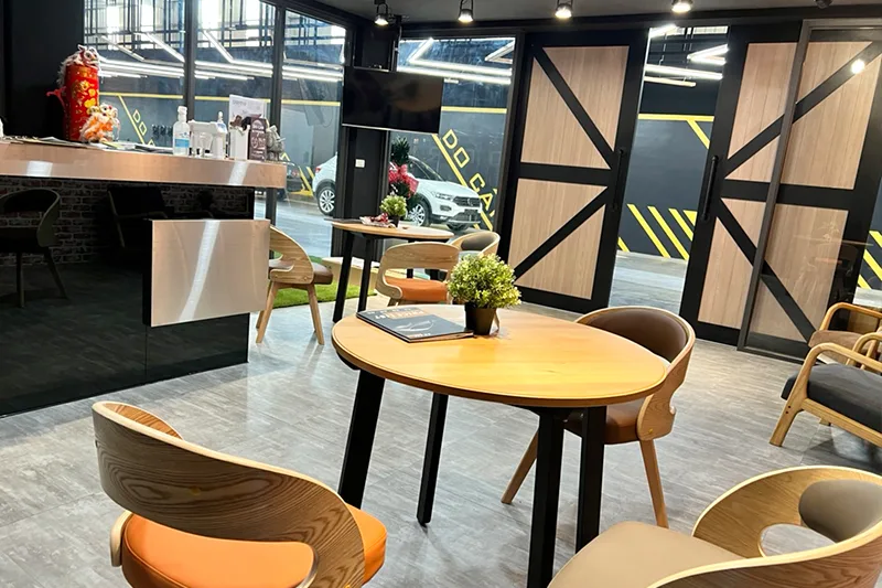 位於嘉義西區的鍍卡DO CAR 專業汽車美容、包膜、鍍膜中心,在嘉義首創面積高達兩百多坪的施作空間,不僅擁有全室內場地、無塵施作空間、汽車頂高機、頂級的施作環境外,更設立專屬交車空間及北歐風客戶休息區,接待人員皆有專業的職前訓練,讓每位愛車的車主們在等待愛車的同時都能享有最尊榮感受。